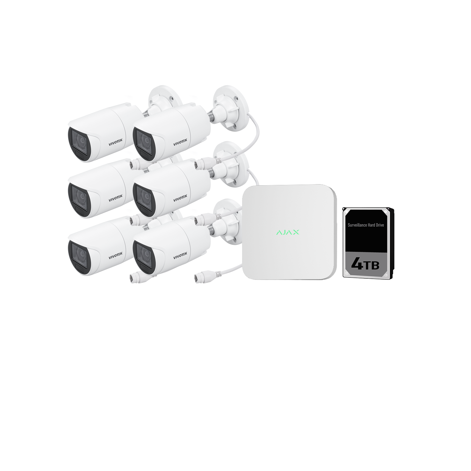 Ajax 8CH White NVR Vivotek AI 5MP Motorised Bullet Kit - KIT-AJAX-AI-5MP8064BM-W