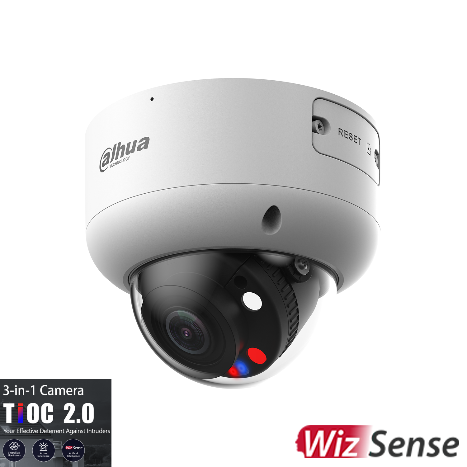 TiOC stands for Three-in-One Camera, combining Full-Colour Video, Active Deterrence, and AI Detection into one powerful security solution.
