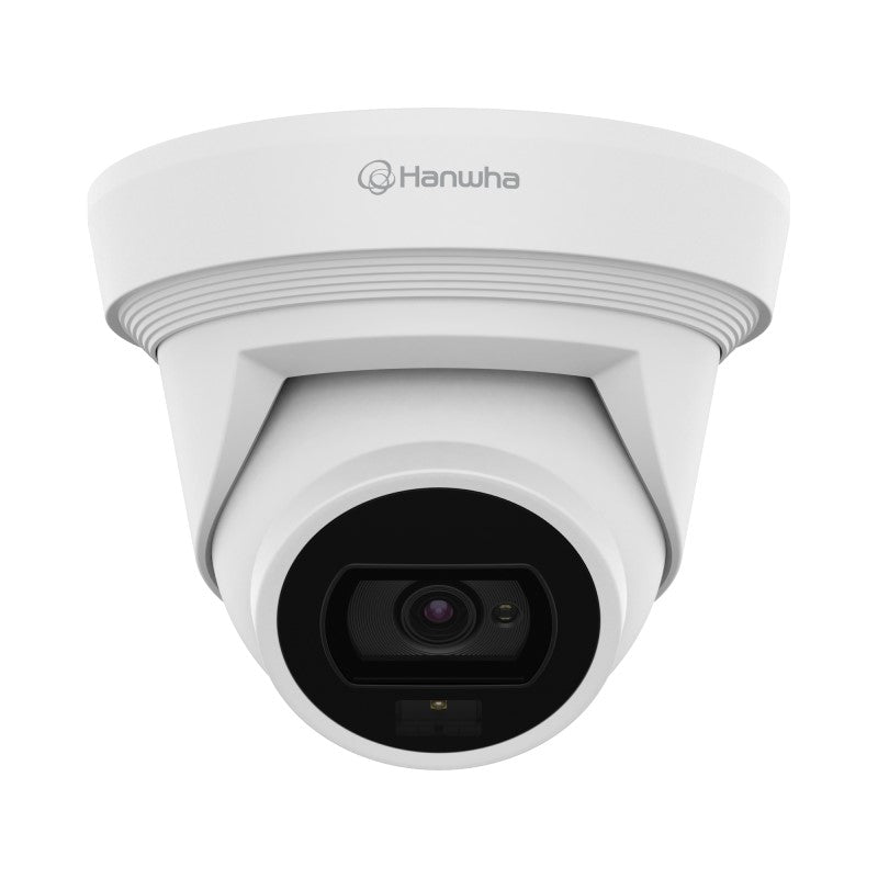 Hanwha's HAN-QNE-C9013RL 8MP outdoor AI flateye camera detects and classifies people and vehicles in real time, greatly enhancing the accuracy of video analytics. Q series AI cameras can help improve operator efficiency even with conventional motion detection. The Al dual light camera features a warm white LED and Infrared (IR) lights with flat-eye design for easy installation.
