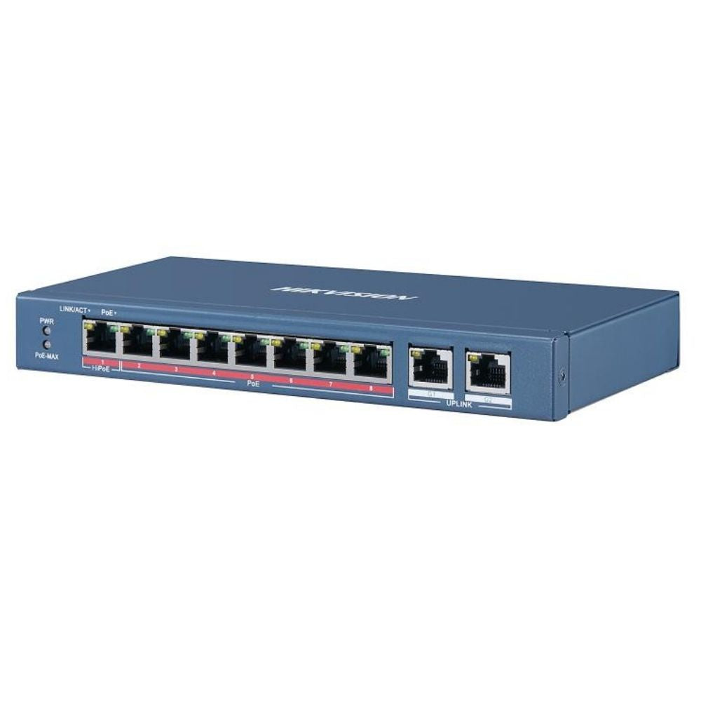 The Hikvision DS-3E0310HP-E is an 8-port Fast Ethernet unmanaged PoE switch designed for reliable power and data transmission in various security applications. This robust switch offers intelligent PoE management, extended long-range PoE transmission up to 300 meters, and supports the IEEE 802.3bt standard for high-power devices, providing up to 90W on a single port. Ideal for powering IP cameras, wireless access points, and other PoE-compatible devices, it's a perfect solution for home security setups, small office networks, or expanding an existing surveillance system with ease and efficiency.