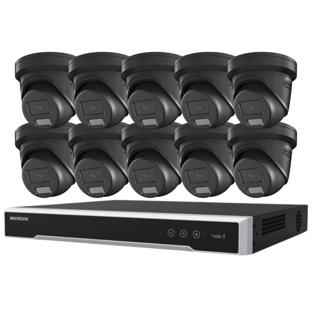 Hikvision Security Kit: 10x 8MP Black Turret, Smart Hybrid, ColorVu, Liveguard, 4CH NVR, HDD - HK-Q10