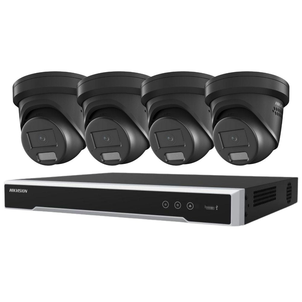 Hikvision Security Kit: 4x 8MP Black Turret, Smart Hybrid, ColorVu, Liveguard, 4CH NVR, HDD - HK-Q4