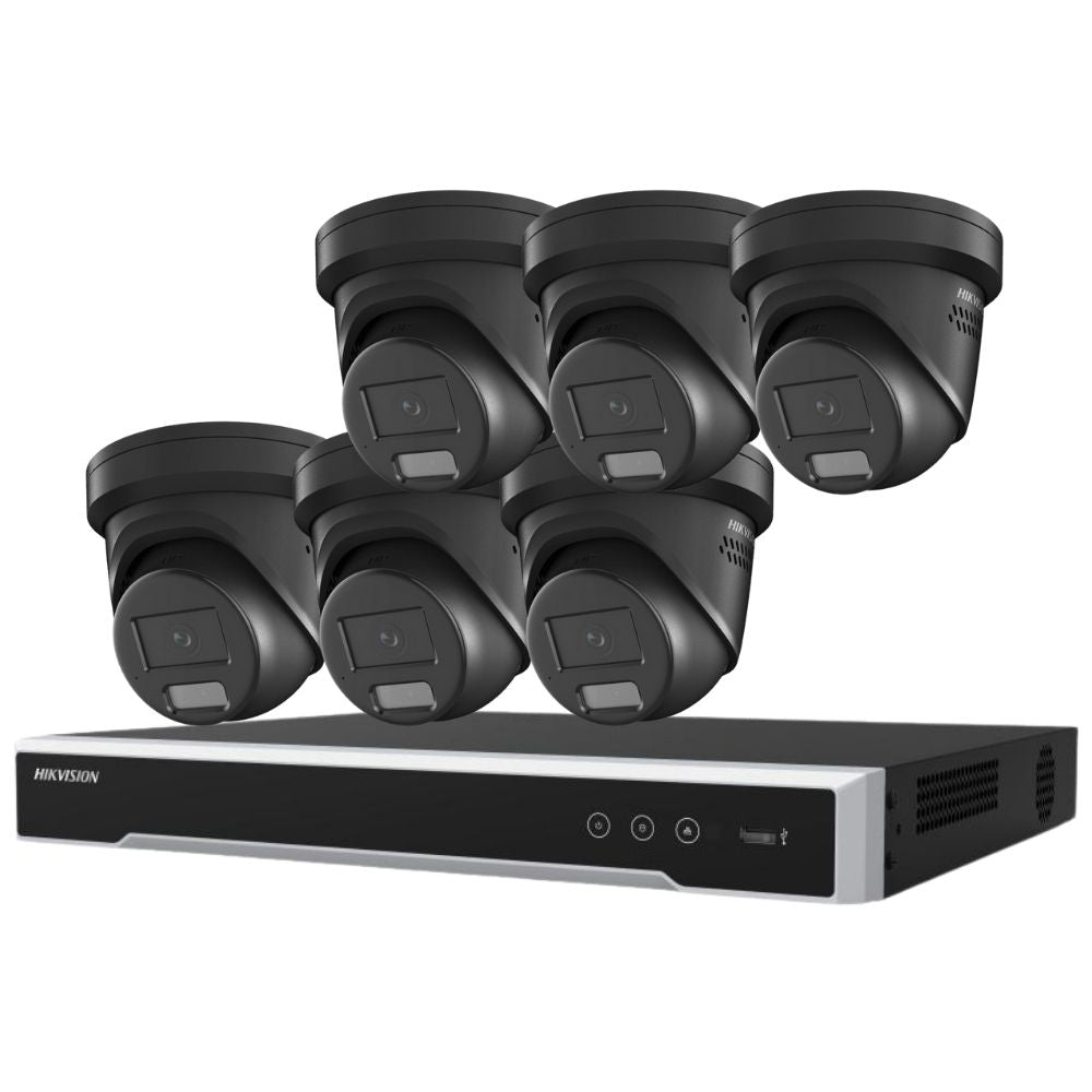 Hikvision Security Kit: 6x 6MP Black Turret, Smart Hybrid, ColorVu, Liveguard, 4CH NVR, HDD - HK-C6