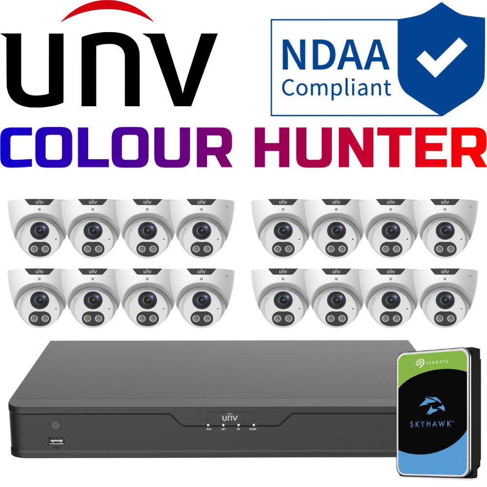 Uniview ColourHunter Security System: 16x 5MP Turret Cams, 16CH 4K NVR + HDD