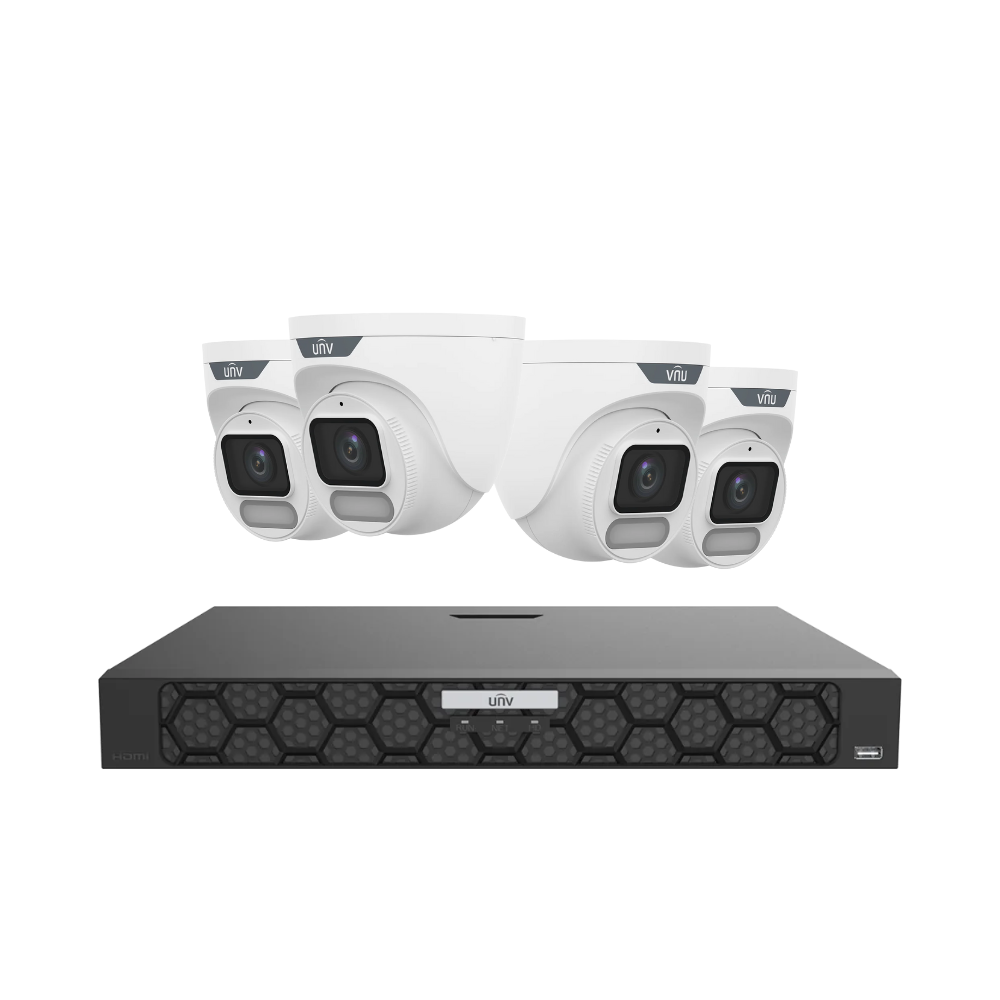 Uniview Security Kit: 4x 8MP OwlView Turret, IQ Series NVR, Warm Light, ColorHunter, Mic